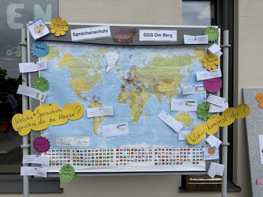 Wie gut, dass es für alle genug „Mutmurmeln“ gab! Inspiriert von dem Buch „Mutmurmeln“ konnten die Kinder und Erwachsenen ihre Nervosität in positive Energie umwandeln. Unsere neuen Erklässler konnten gestärkt ihre ersten Schritte in die Schulwelt wagen und die erste Schulstunde verging damit wie im Flug. Während die Kinder in ihrer ersten Schulstunde beschäftigt waren, hatten die Erwachsenen die Gelegenheit, den „Sprachenschatz“ unserer Schule zu füllen. Zudem schrieben Sie gute Wünsche für die Erstklässler auf und präsentierten diese an einer Stellwand. Es war ein wunderschöner Anblick, die vielen positiven Botschaften zu sehen, die den neuen Schülerinnen und Schülern Mut und Zuversicht schenken sollen. Der Förderverein sorgte dafür, dass niemand durstig oder hungrig blieb. Mit erfrischenden Getränken und frisch gebackenen Waffeln wurden alle Gäste verwöhnt.